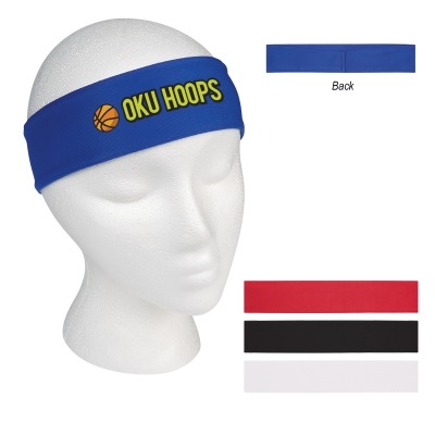 100% Polyester With Stretch | Tapered Back For More Secure Fit | One Size Fits All. Approximate Size: 9 1/2″ W x 2 1/4″ H, Imprint Area: 3″ W x 1″ H