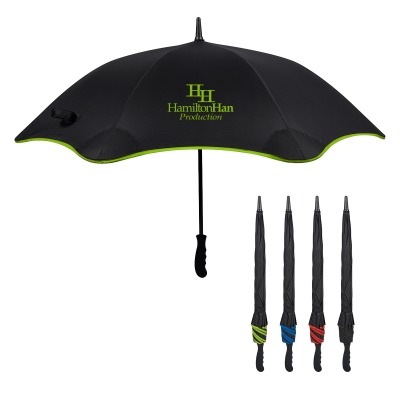 Automatic Open | Steel Frame | Rubberized Handle | Pongee Material | 32″ Closed. Approximate Size: –, Imprint Area: 9″ W x 4″ H