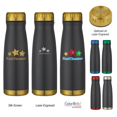 Stainless Steel Outer And Inner | Double Wall Construction For Insulation Of Hot Or Cold Liquids | Vacuum Insulated | Screw On, Spill-Resistant Lid | Wide Mouth Opening | Meets FDA Requirements | BPA Free | Hand Wash Recommended. Approximate Size: 10″ H, Imprint Area: Silk-Screen: 3″ W x 2 1/2″ H … Wraparound: 6″ W x 2 1/2″ H .See General Information For Details On Wraparound Imprint..Optional 4-Color Process: 3″ W x 2 1/2″ H .Optional Laser Engraved: Bottle: 1 1/2″ W x 2 1/2″ H … Lid: 1″ Diameter (Must Specify on PO).Standard Imprint is Horizontal. For Vertical Imprint, Must Specify on PO.