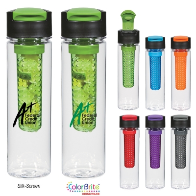 Durable Tritanâ„¢ Material | Impact And Shatter Resistant | Screw On, Spill-Resistant Flip-Top Lid | Flavor Your Beverage With Your Choice Of Fresh Fruits Or Herbs | Meets FDA Requirements | BPA Free | Hand Wash Recommended. Approximate Size: 9 3/4″ H, Imprint Area: Silk-Screen: 3″ W x 4″ H … Wraparound: 6″ W x 4″ H (Silk-Screen Only) See General Information For Details On Wraparound Imprint..Optional 4-Color Process: Standard: 3 3/4″ W x 4″ H … Large: 5 3/4″ W x 4″ H (Must Specify on PO)
