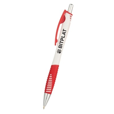 Plunger Action | Rubber Grip For Writing Comfort And Control . Approximate Size: 5 1/2″ H, Imprint Area: 1 1/4″ W x 3/8″ H