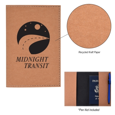 Made Of Washable, Recycled Kraft Paper | 2 Large Pockets For Passport, Cash Or Receipts | Elastic Pen Loop | Spot Clean/Air Dry. Approximate Size: 4″ W x 6″ H , Imprint Area: 2 1/2″ W x 3″ H