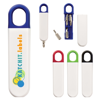 2 Flat Head And 2 Phillips Head Bits | Magnetic Port For Accepting Bits. Approximate Size: 3 5/8″ W x 7/8″ H, Imprint Area: 2″ W x 1/2″ H
